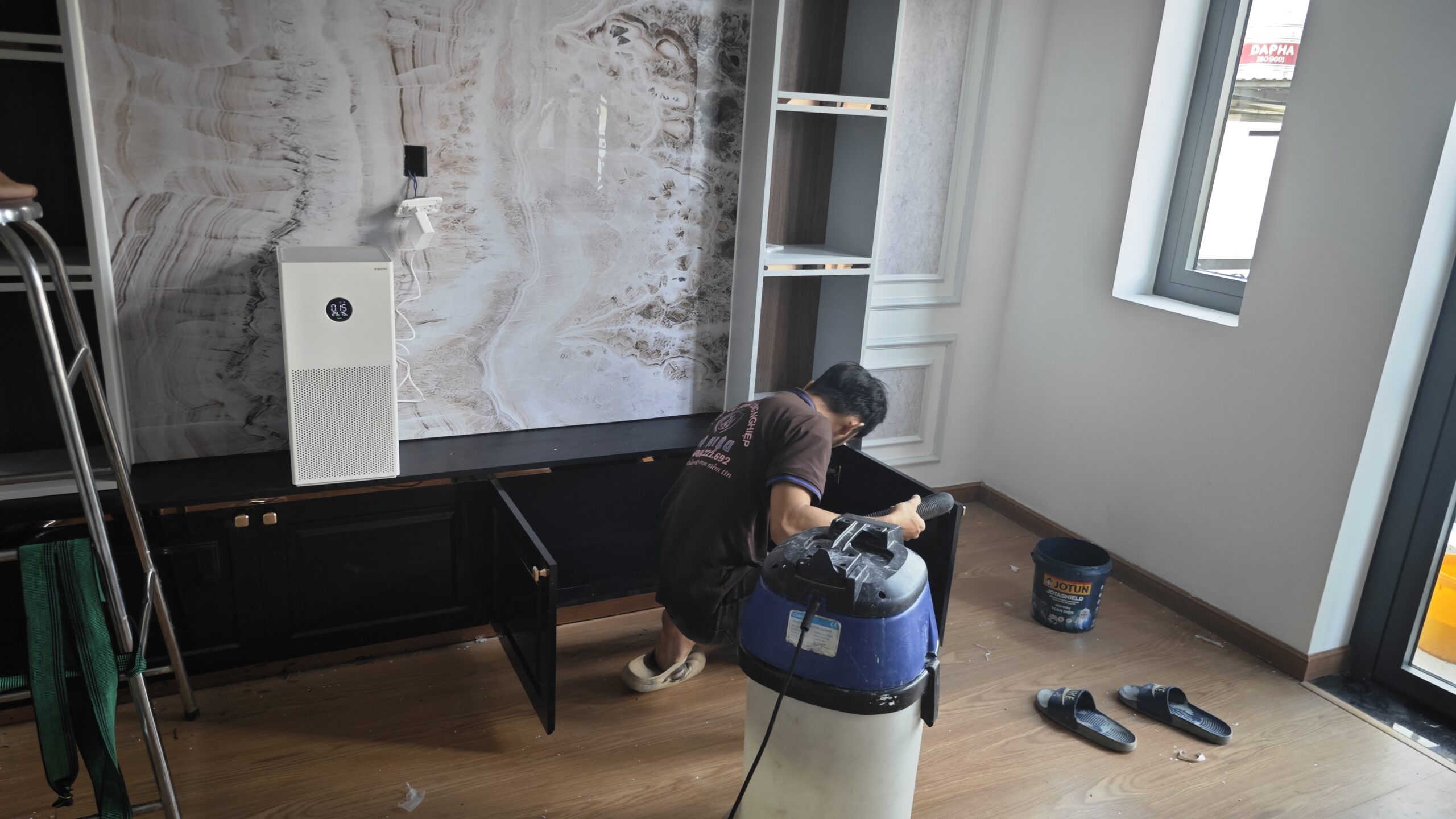 - Hút bụi xử lý sơn vết ố lau sàn.